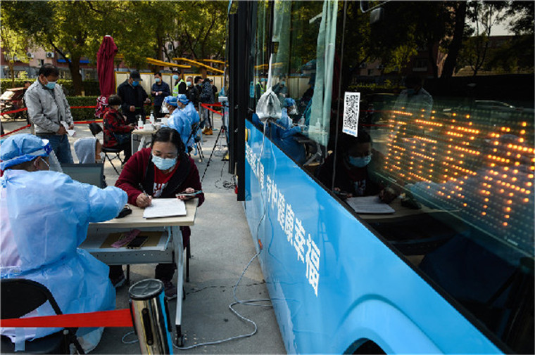10月25日,大兴区旧宫镇的居民在接种疫苗加强针。新华社记者 李欣 摄