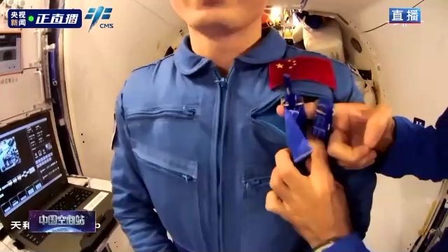 航天员 翟志刚:同学们,失重对我们的心血管有影响,对我们的骨骼有影响,对我们的肌肉有影响。为了防护失重导致我们肌肉萎缩,在我们空间站里,除了有跑台、自行车、拉力器以外,还有一件秘密武器。同学们看叶老师穿的这身衣服有什么与众不同吗?从外表上看没有什么区别,我们来看看它的内部结构。