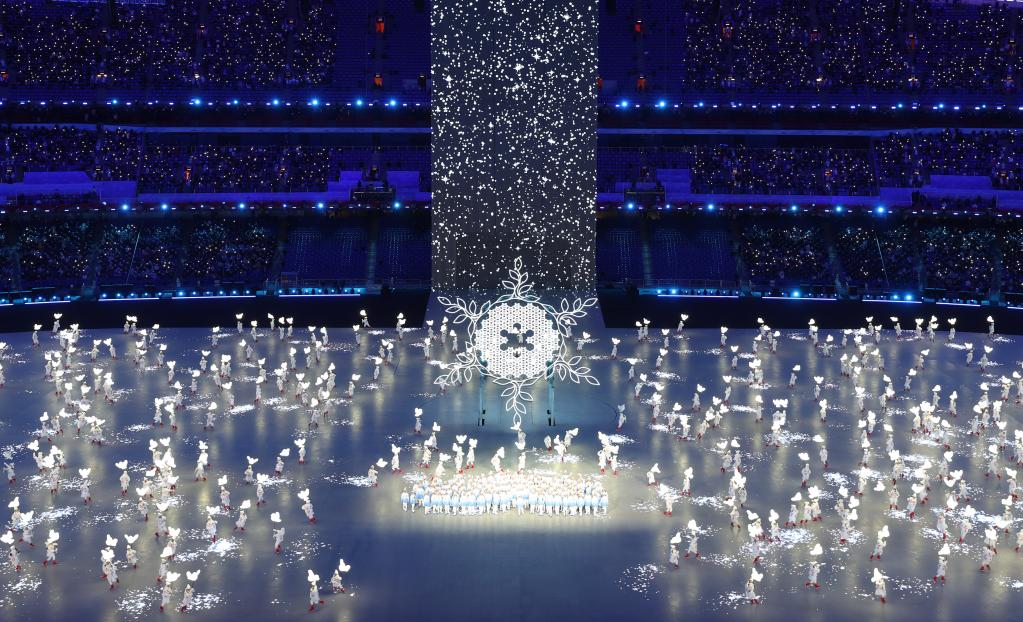 2月4日晚,第二十四届冬季奥林匹克运动会开幕式上的“雪花”环节。新华社记者 杨磊 摄