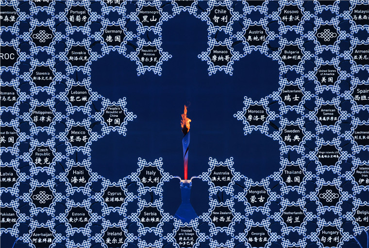 没有主火炬腾空而起、熊熊燃烧的场景,两位00后中国运动员迪妮格尔·衣拉木江和赵嘉文将最后一棒“飞扬”火炬嵌入由所有代表团雪花造型引导牌组成的“大雪花”中间,冬奥主火炬就此“点燃”。虽是一簇“微火”,表达出的意象和理念却如此清晰强烈。