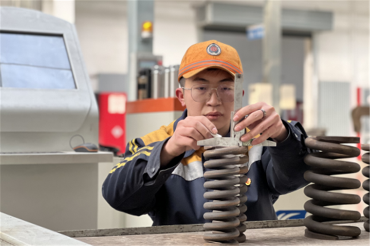 差之毫厘,失之千里。负责枕簧选配的孔祥泽每天要测量800多个枕簧的高度,将其分配成48组,每组的18个枕簧高度差均要控制到2mm以内。虽然技术含量不高,但极其考验耐性,00后的他有着年轻人少有的沉稳。