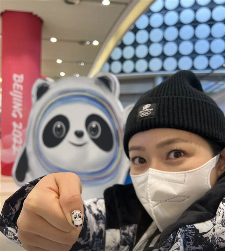 金敬爱带着冰墩墩美甲上赛场