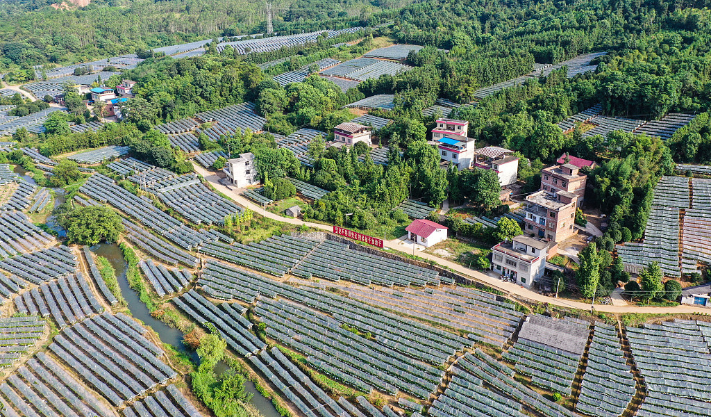 △ 近年来,广西桂林全州县才湾镇毛竹山村葡萄平均年产量可达100万斤以上,人均年收入3万元。