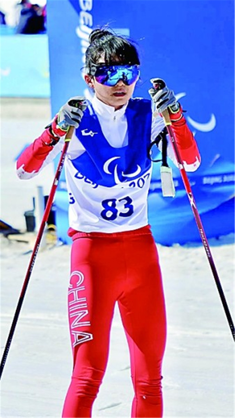 3月8日,残奥冬季两项女子中距离(视障)比赛在张家口国家冬季两项中心举行。赛程10公里,中途进行4轮射击,这对王跃来说,是体能和射击精准度的双重挑战。
