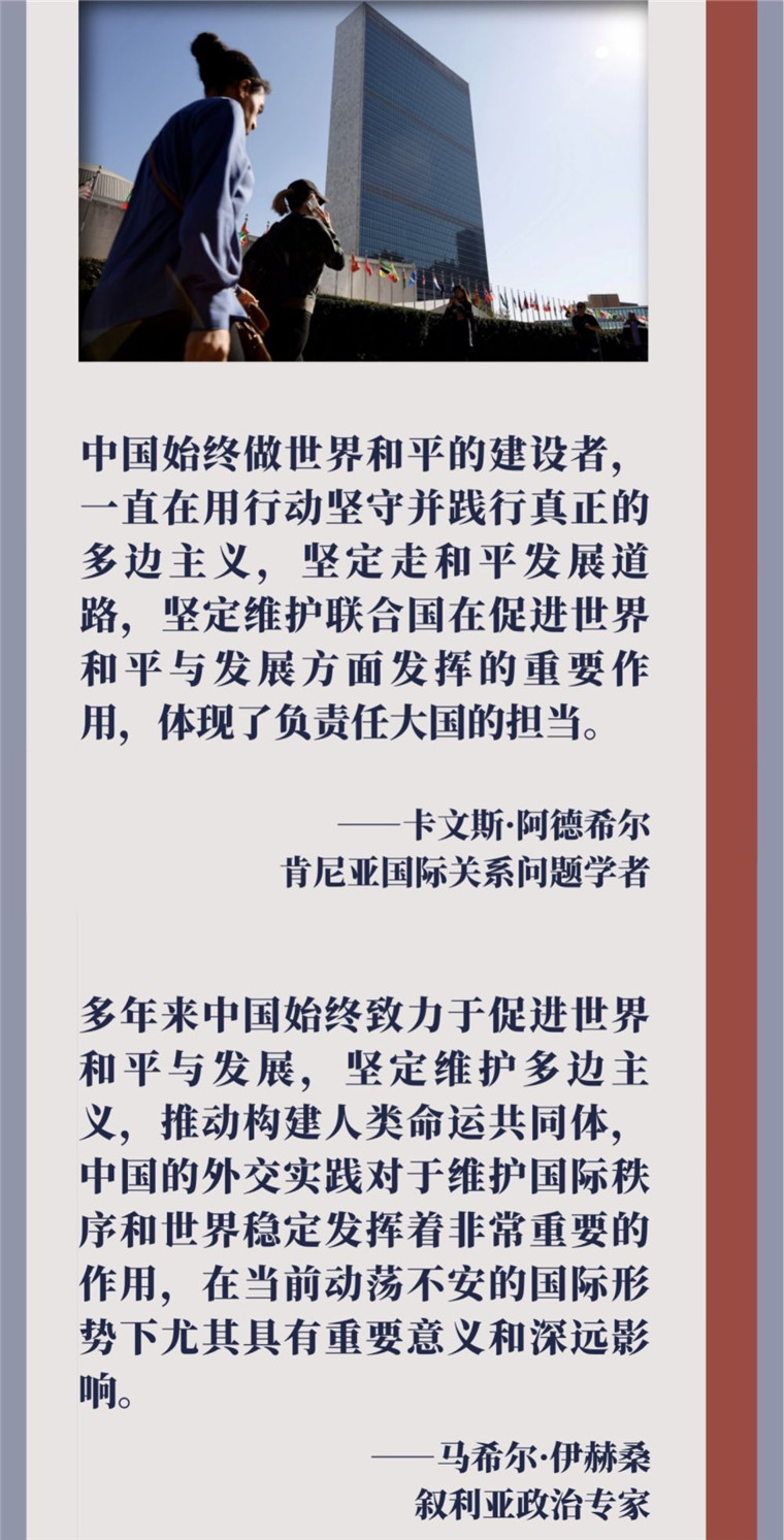 受访多国专家学者认为,中国始终维护世界和平,促进团结合作,推动全球发展,中国的外交政策和实践令人称赞。