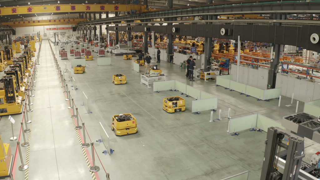 2021年8月27日,沈阳新松机器人自动化股份有限公司智能移动机器人生产车间。(沈阳新松机器人自动化股份有限公司供图)