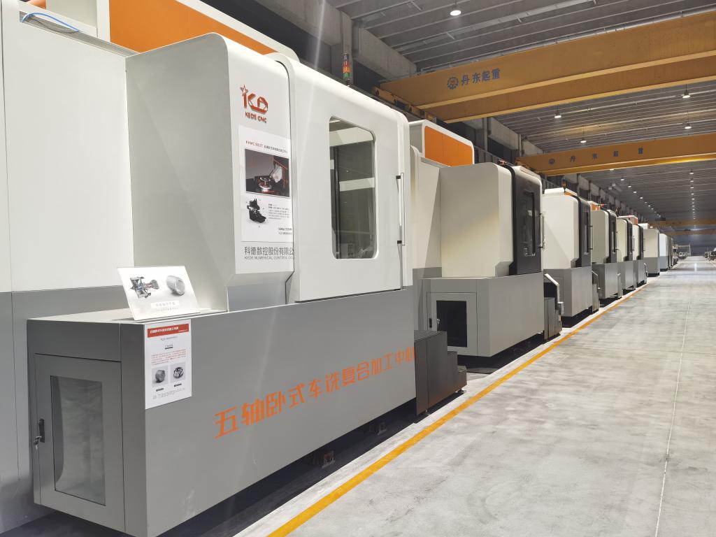 大连光洋科技集团恒温恒湿地藏式生产车间里的五轴卧式车铣复合加工中心。(新华社记者邹明仲摄)