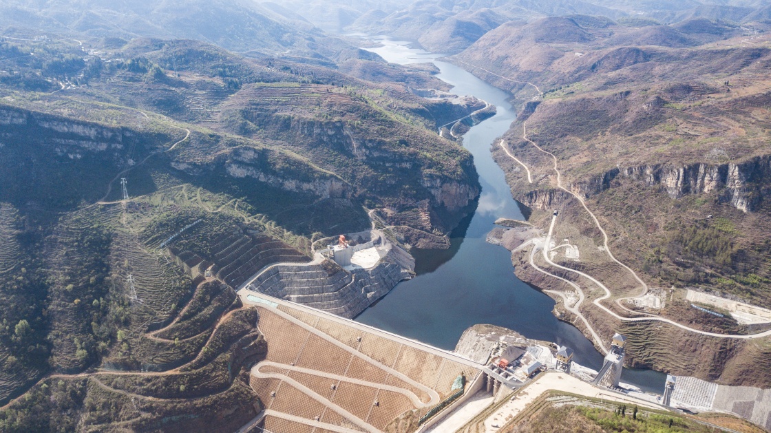 这是在位于乌蒙山区的贵州省纳雍县六冲河畔拍摄的夹岩水利枢纽工程(3月17日摄,无人机照片)。新华社记者 陶亮 摄
