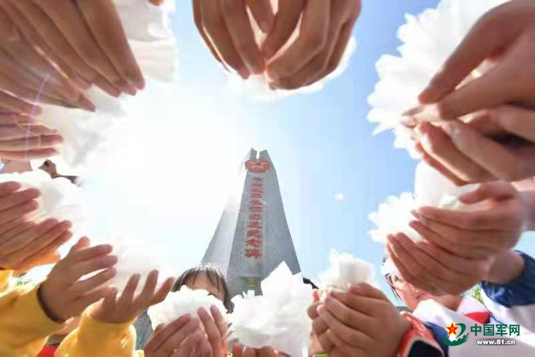 随后,肖婷婷带着小讲解员们来到中央红军长征出发纪念碑前,整齐列队,大家手捧小白花向纪念碑默哀、三鞠躬后,依次走上纪念碑前,向革命先烈敬献白花寄托哀思。