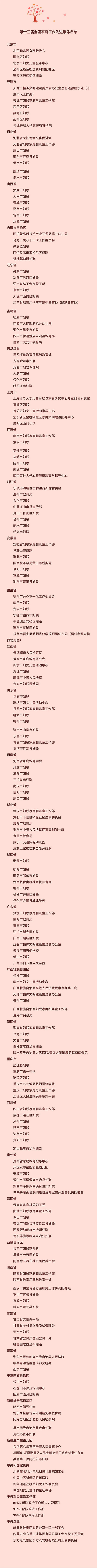 全国妇联当日还表彰了200个全国家庭工作先进集体,198名全国家庭工作先进个人。这些集体和个人来自妇联及相关部门推进家庭家教家风建设一线。