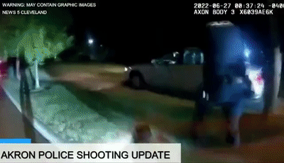 俄亥俄州警方公开的执法记录仪视频,显示当地警察正追捕非洲裔男子沃克。视频截屏