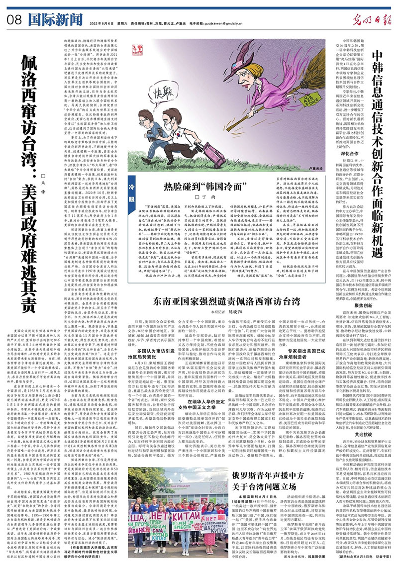 日前,美国国会众议长佩洛西不顾中方强烈反对和严正交涉,窜访中国台湾地区。柬埔寨、缅甸、越南等东南亚多国政府、华侨、学者对此表示强烈谴责。