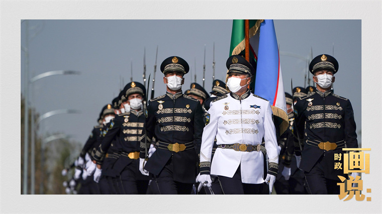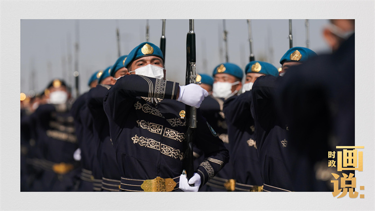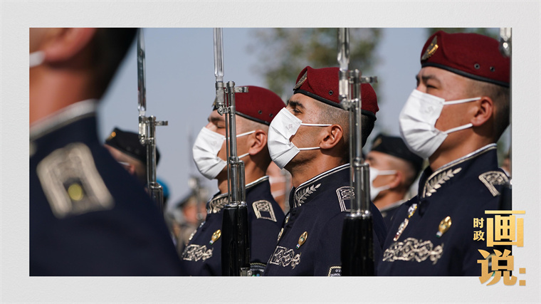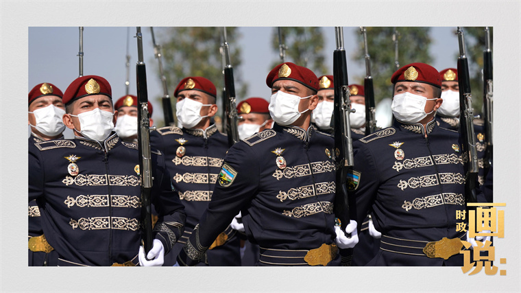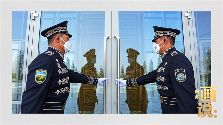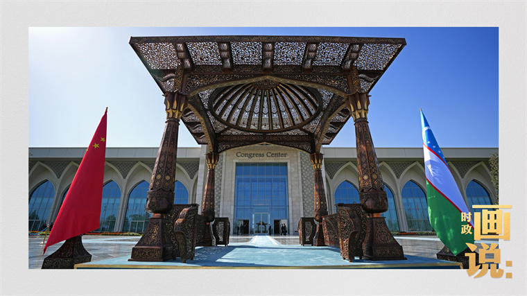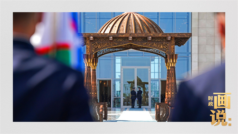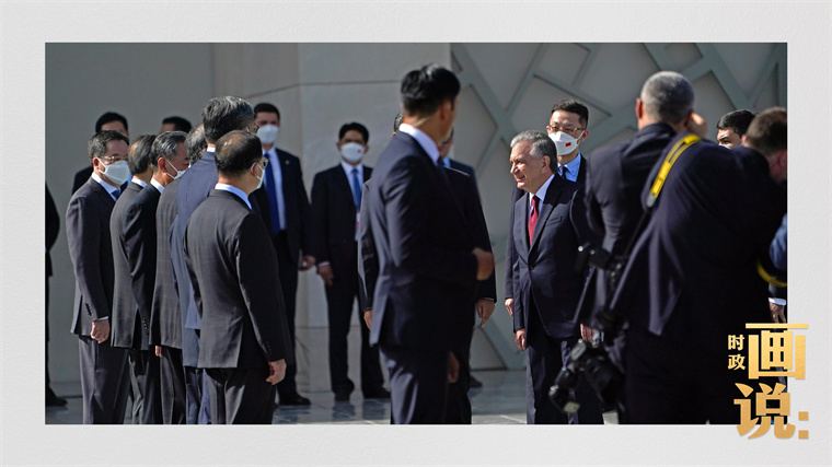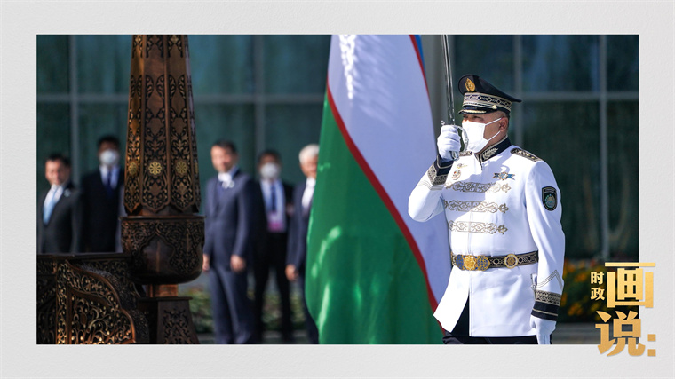 当地时间9月15日上午,乌兹别克斯坦总统米尔济约耶夫在撒马尔罕国际会议中心北广场举行隆重欢迎仪式,欢迎习近平主席到访。
