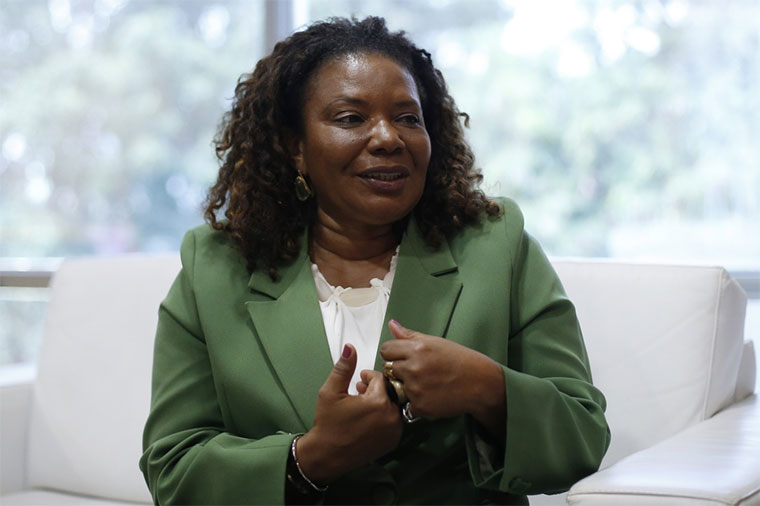 4月10日,巴西文化部长梅内塞斯在巴西利亚接受记者专访。 新华社发(卢西奥·塔沃拉 摄)