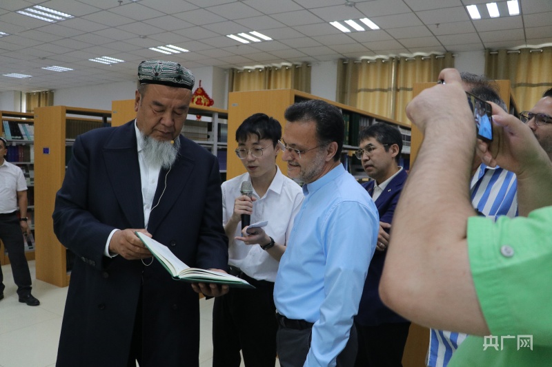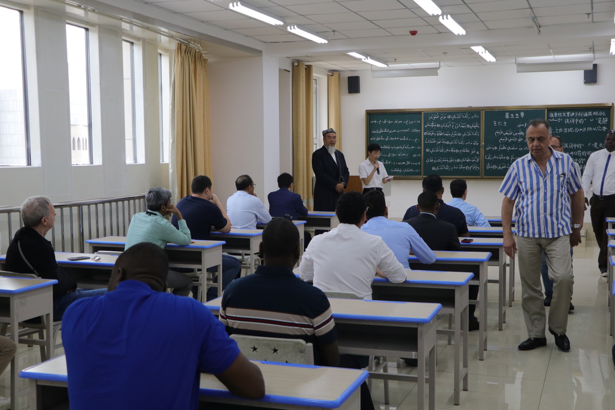 在图书馆,经学院院长向使节们展示了多语言的古兰经译本,他介绍,这里有5800多册少数民族语言类的书籍,能够满足学生宗教知识的需求,另外还有30000多册的电子版书籍。在礼拜殿,经学院院长向使节们具体阐述了依据宪法中宗教信仰自由、保护正常宗教活动制定的具体条例。
