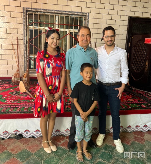 墨西哥驻华使馆参赞艾克多·多尔贝克尔与努尔东·司马义一家合影(央广网记者 王晶 摄)