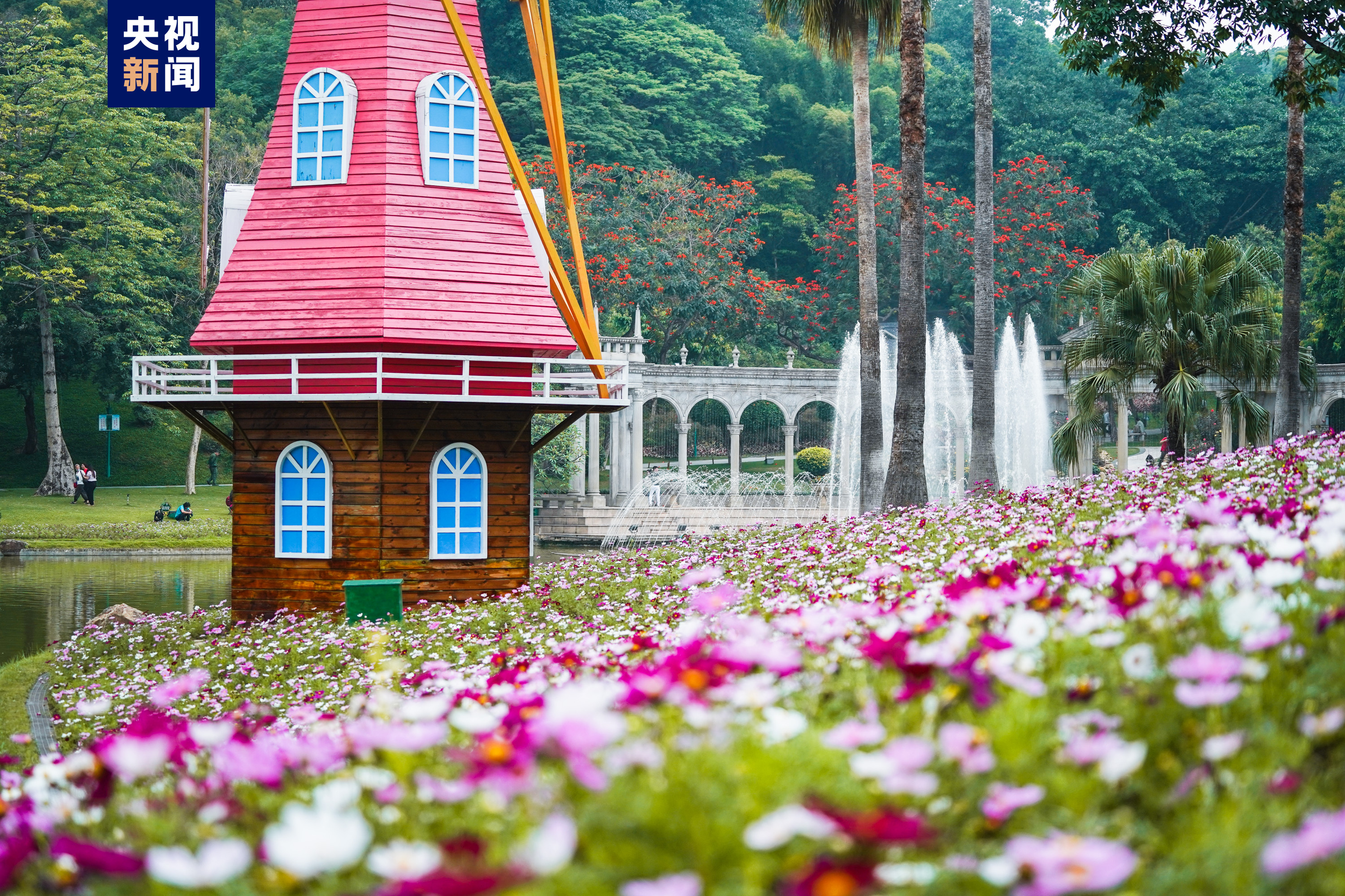 岭南大地,出门见绿,推窗见景。傍晚,白云山麓的云台花园,一对青年人,正在拍摄婚纱照。蓝天碧水,红花绿道。人在花中笑,花在人旁俏,俨如画中人。准新郎告诉总台记者,“希望让这一片蓝天白云见证他们的爱情。”