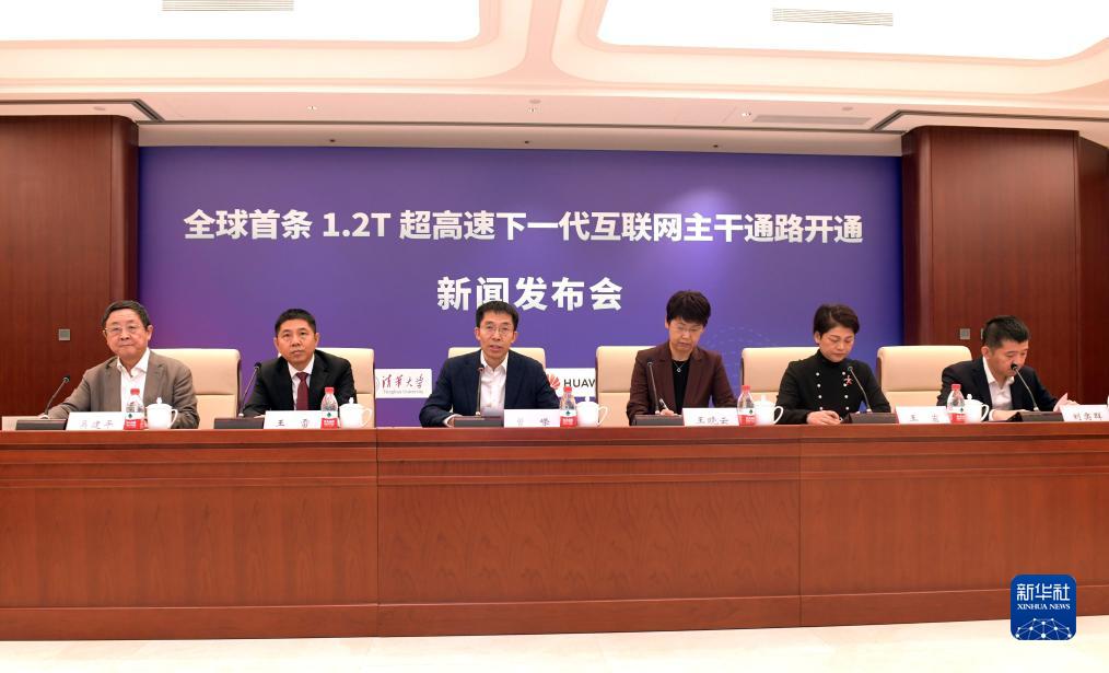 11月13日,全球首条1.2T超高速下一代互联网主干通路开通新闻发布会在清华大学举行。新华社发(清华大学供图)