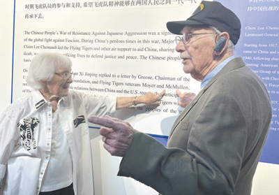 走进博物馆,代表团成员在一张张老照片、一件件珍贵实物前流连,认真聆听讲解,还不时与身边亲友交谈。麦克马伦在展板上看到自己的名字后,兴奋地向妻子珍妮弗指了指名字的位置。他曾担任B—24轰炸机机头炮手和助理飞行机械师,在昆明和成都参加对日作战。看着玻璃柜里的展品,他感慨:“美中两国人民的友谊将延绵不断。”