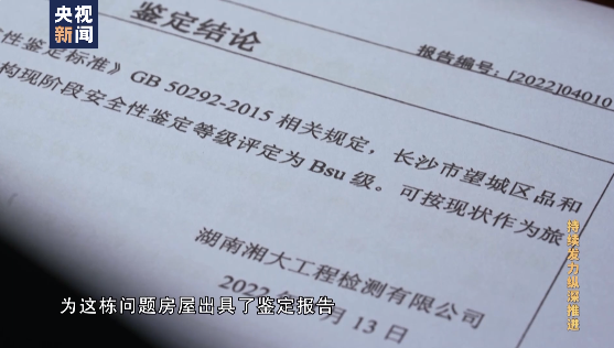 事故发生不久前,湖南湘大工程检测公司还对该房屋4、5、6三层楼(家庭旅馆),出具了虚假的房屋安全鉴定报告,称楼房符合安全使用条件。