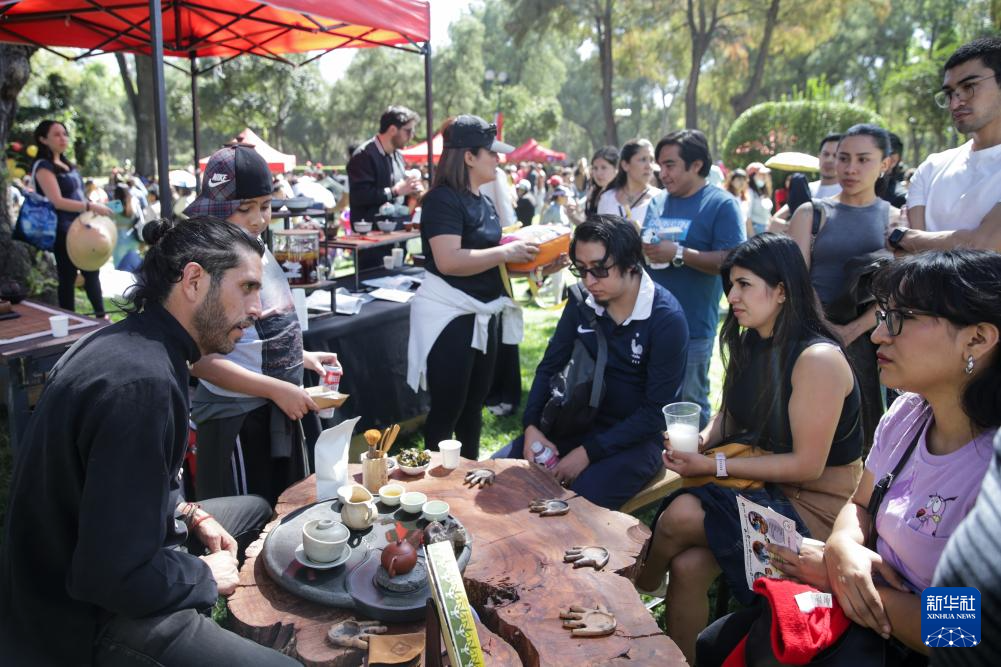 2月3日,当地民众在墨西哥首都墨西哥城国家艺术中心举行的第三届中国新年文化节上体验中国茶艺。