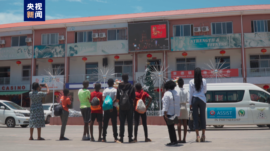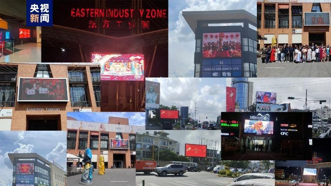 赞比亚首都卢萨卡的户外大屏播放总台春晚宣传片