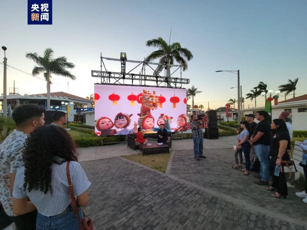尼加拉瓜著名公园举行现场活动,播放总台春晚宣传片。