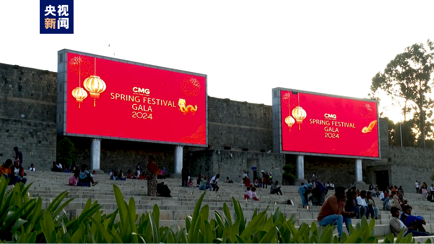 埃塞俄比亚梅斯克尔广场播放总台春晚宣传片