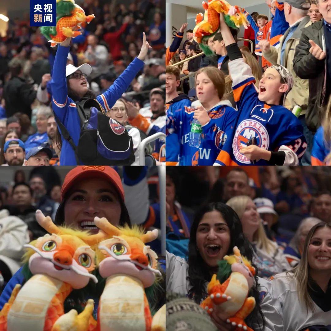 美国纽约北美职业冰球联赛现场获得总台春晚吉祥物“龙辰辰”的观众