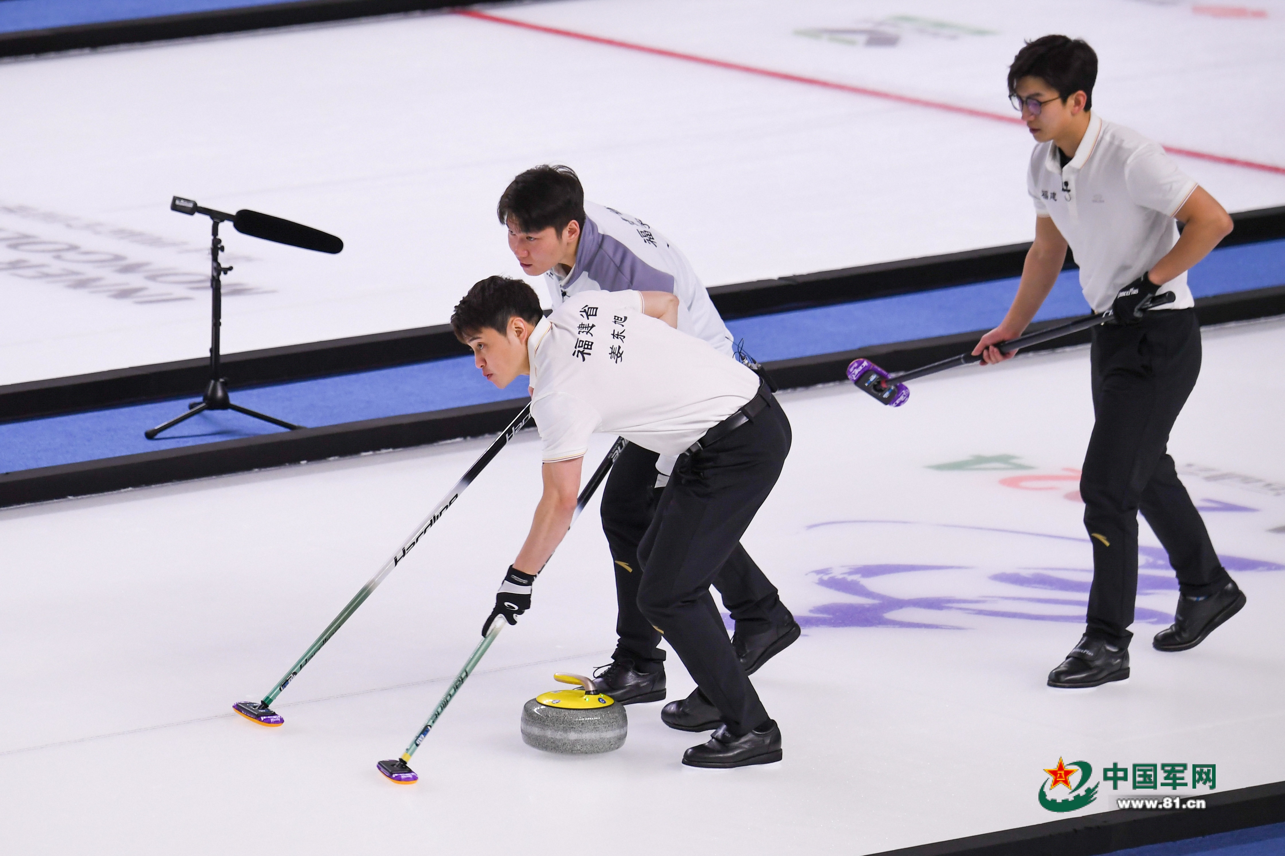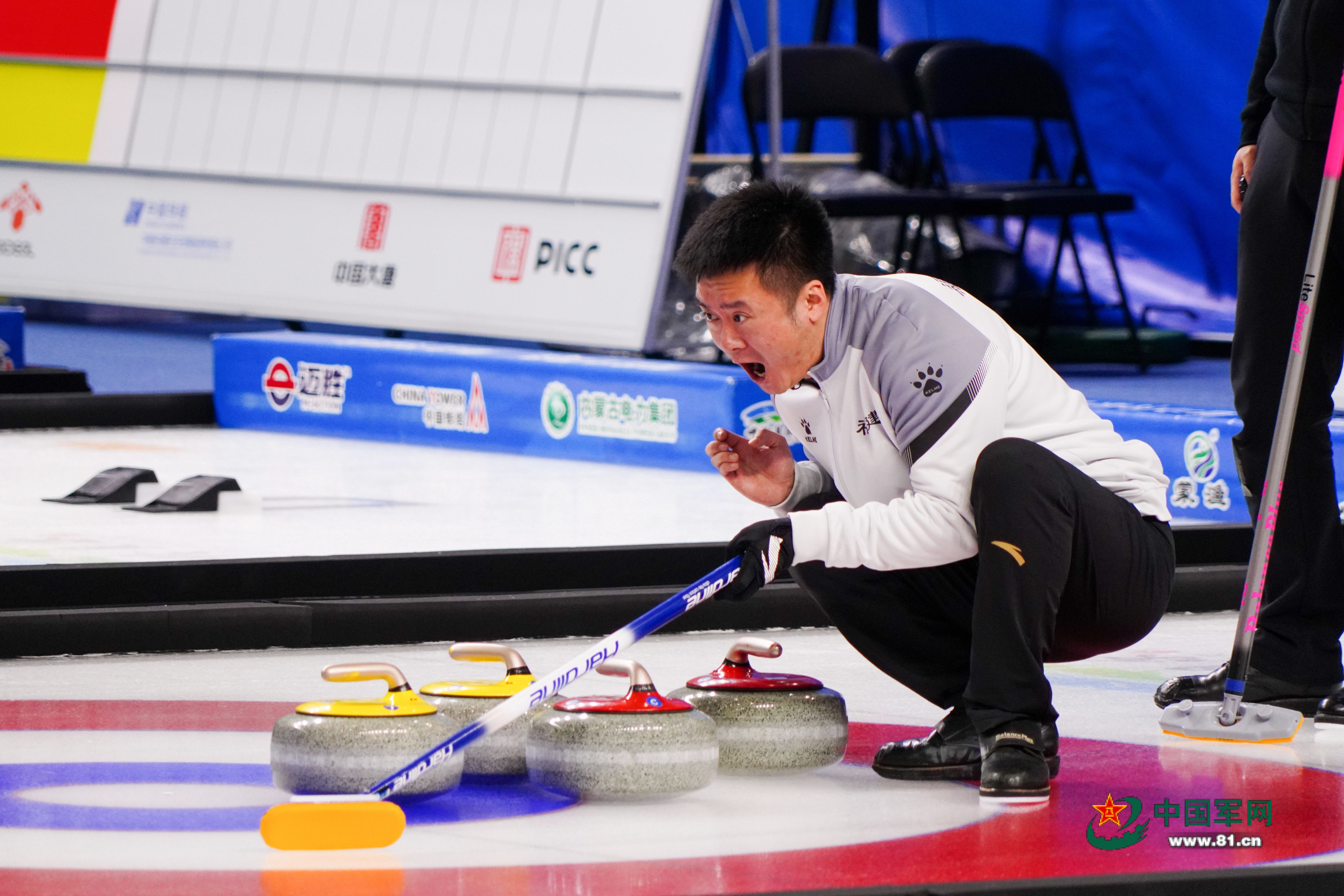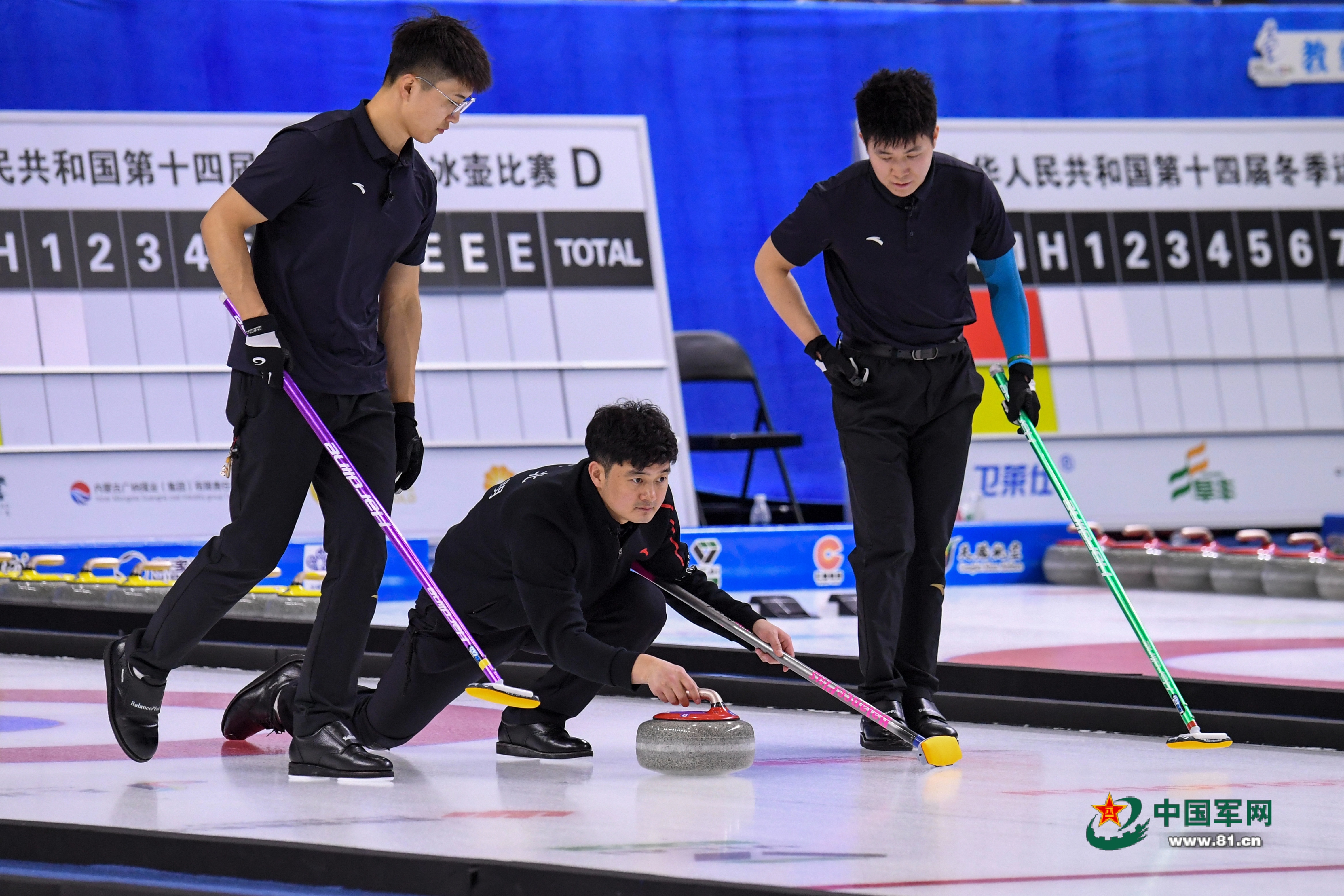 2月26日,第十四届全国冬季运动会冰壶比赛公开组男子组决赛。解放军报记者栾铖摄