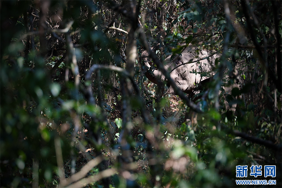 在茂密森林中觅食的亚洲象(3月5日摄)。新华网 徐华陵 摄