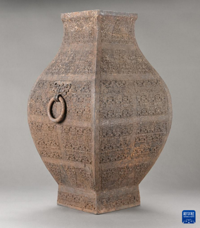 这是武王墩墓出土的铜钫(2024年4月8日摄)。 新华社发(安徽省文物考古研究所供图)
