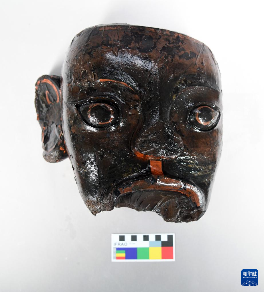 这是武王墩墓出土的木俑首(2024年4月2日摄)。 新华社发(安徽省文物考古研究所供图)