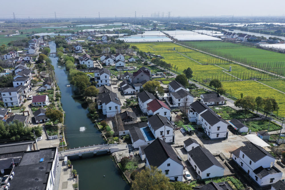 ▲这是浙江省嘉兴市嘉善县姚庄镇横港村景色(2024年3月29日摄,无人机照片)。 新华社记者 徐昱 摄