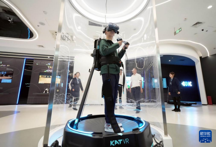 6月1日,昆山元宇宙产业园的元宇宙展示厅里,一名参观者在体验VR游戏。新华社记者 李尕 摄
