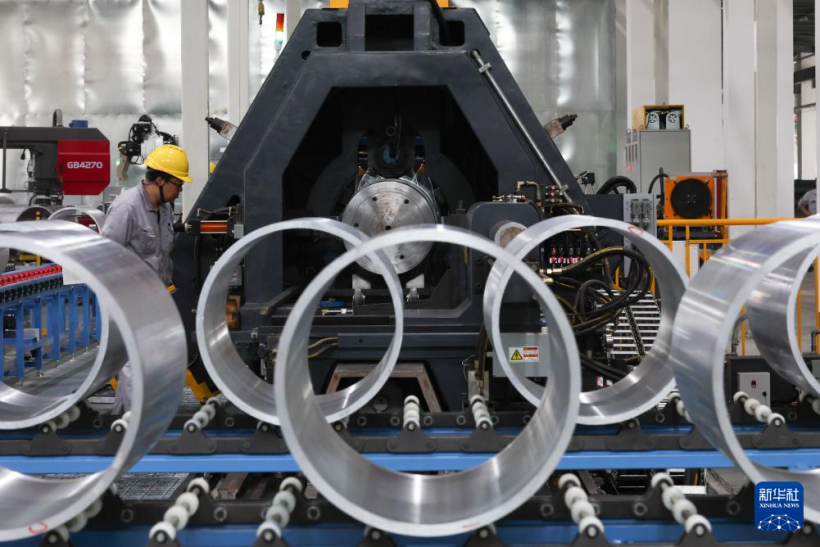 5月31日,一名工作人员在江苏国富氢能技术装备股份有限公司的储氢设备生产车间内作业。新华社记者 杨磊 摄