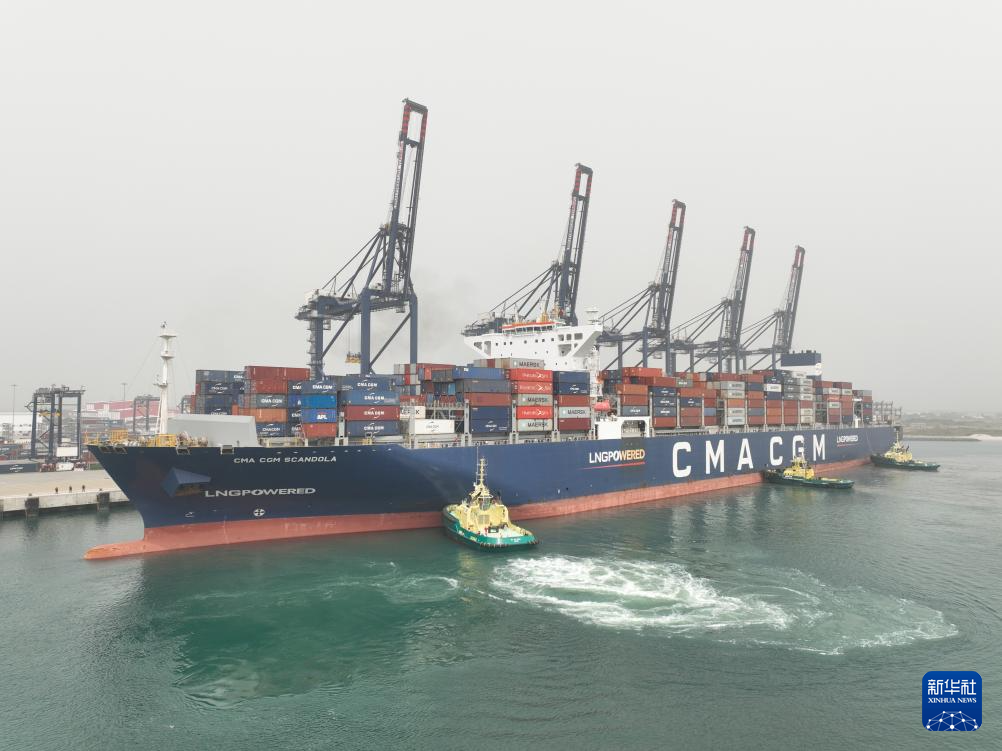 2024年1月29日,法国达飞海运集团一艘大型集装箱货轮缓慢停靠在尼日利亚拉各斯州莱基港。新华社发(莱基港公司供图)