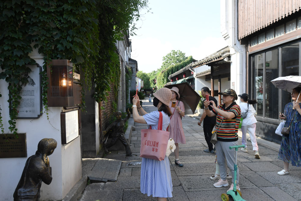 6月12日,在杭州桥西历史文化街区,游客在拍摄街边的历史陈设。