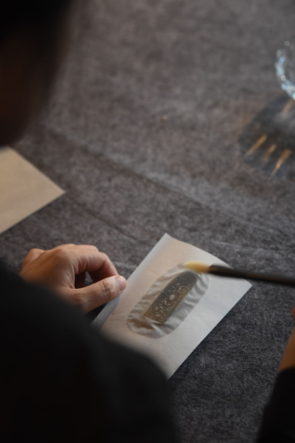 6月12日,在杭州小河直街历史文化街区,一个文化空间的主理人焦娇在制作拓片。
