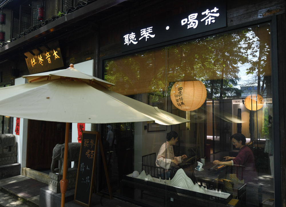 6月12日,在杭州大兜路历史文化街区一家古琴馆,老师在带着学生练琴。