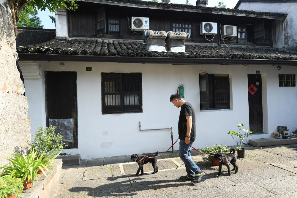 6月12日,在杭州小河直街历史文化街区,一个文化空间的主理人焦娇在打点庭院。