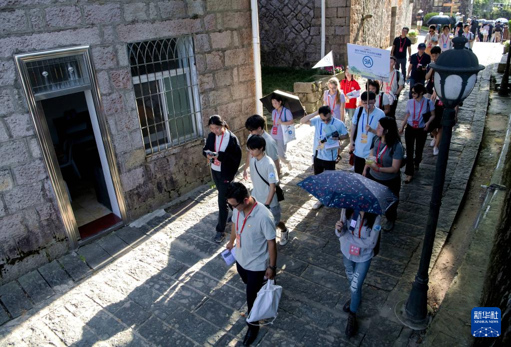 6月24日,中美青年在福州鼓岭万国公益社参观(无人机照片)。