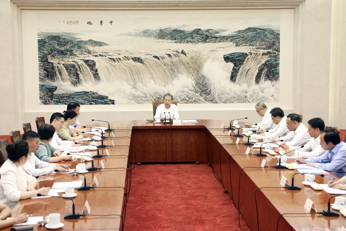 6月26日上午,中共中央政治局常委、全国人大常委会委员长赵乐际同列席十四届全国人大常委会第十次会议的全国人大代表座谈交流。新华社记者 刘卫兵 摄