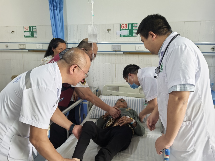 7月21日,肖袁英在石棉县人民医院再次见到了那位被救的村民,村民伸出手握住了她的手。