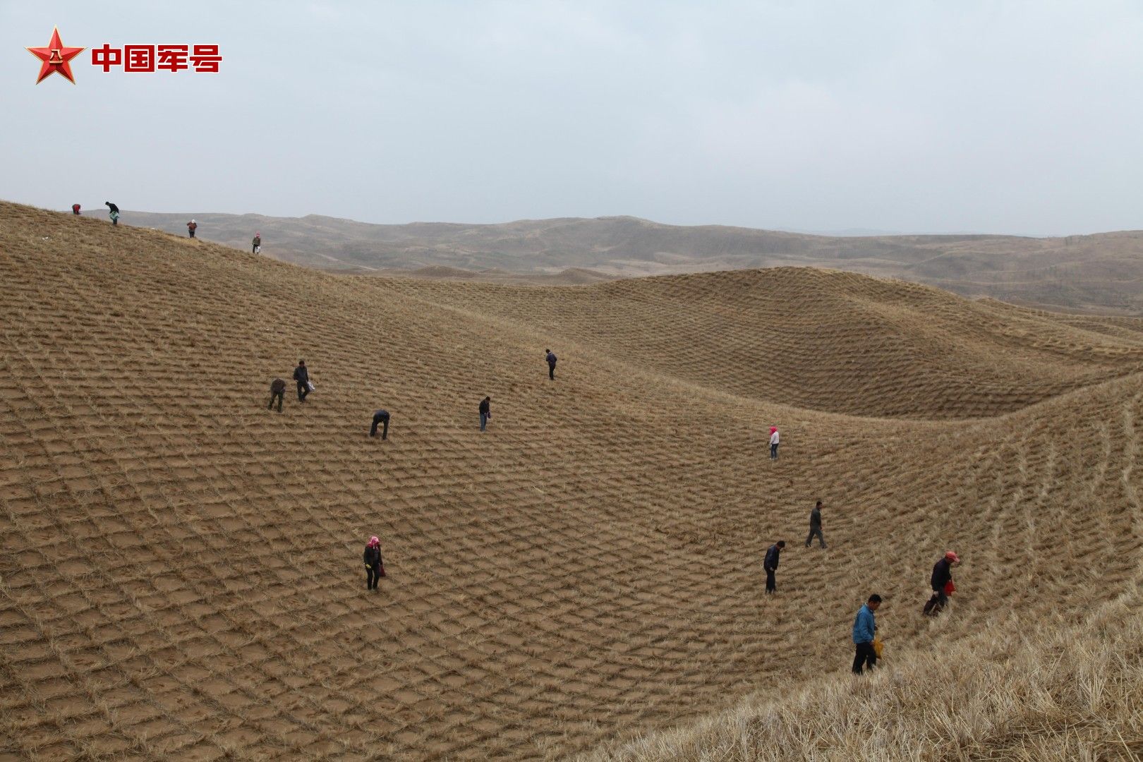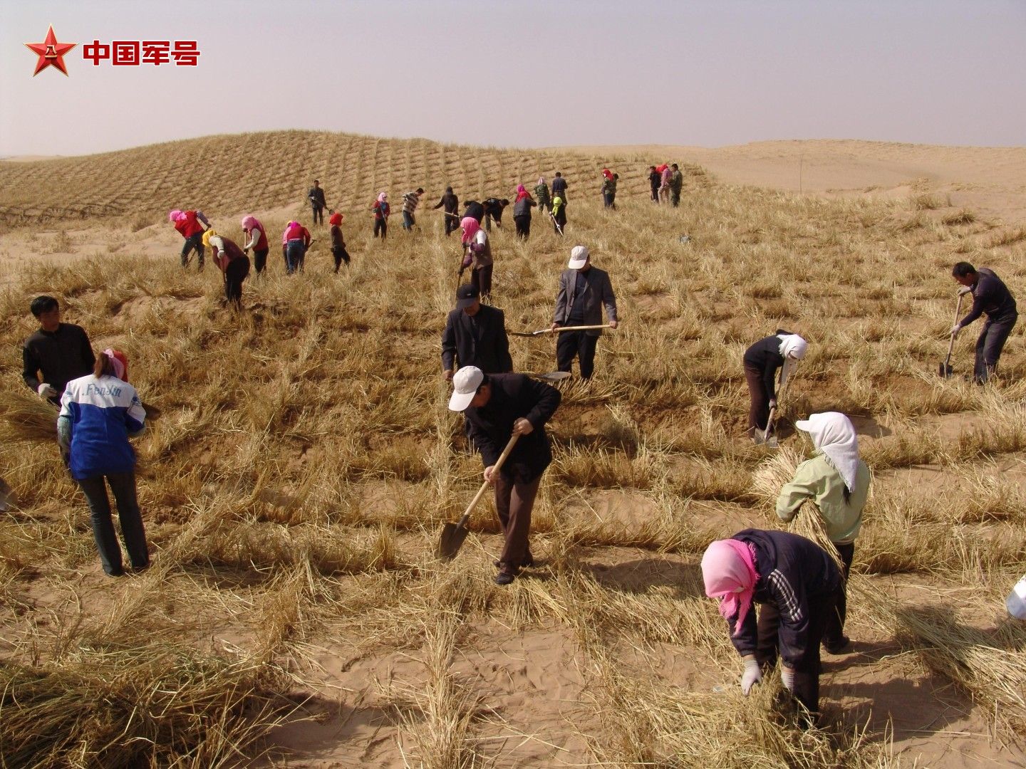 白芨滩人在艰苦治沙。