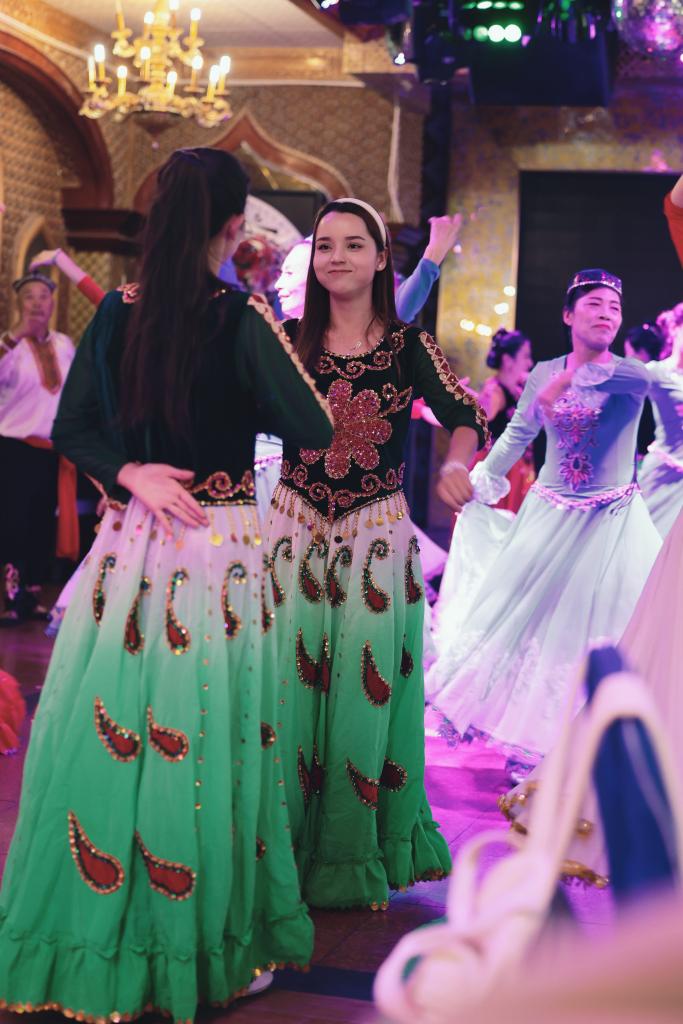 9月25日,在王三街“民族团结一家亲”餐厅,各民族群众在一起跳舞。新华社记者 任沁沁 摄