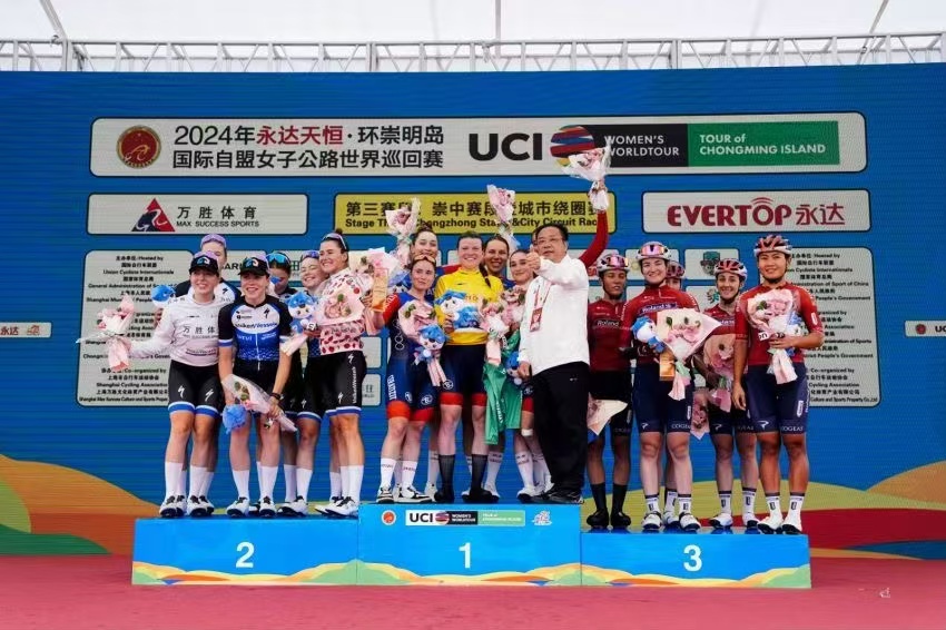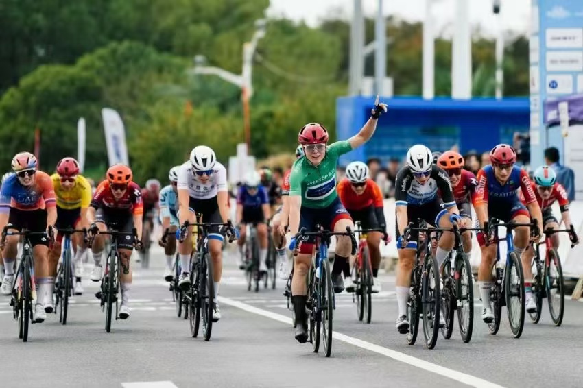 中国军网10月17日电 (记者 仇建辉)2024年环崇明岛国际自盟女子公路世界巡回赛17日完赛。经过激烈比拼,来自森拉天时-WNT女子职业车队的玛尔塔·拉赫第一个冲过终点,继上一赛段后再次加冕赛段冠军,同时锁定代表冲刺最佳的绿衫,并穿上了代表个人总积分第一的黄衫。