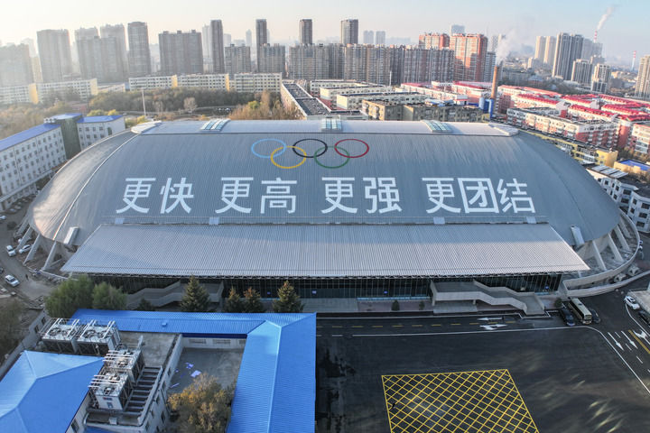 这是2024年10月28日拍摄的黑龙江省冰上训练中心速滑馆(无人机照片)。新华社记者 张涛 摄