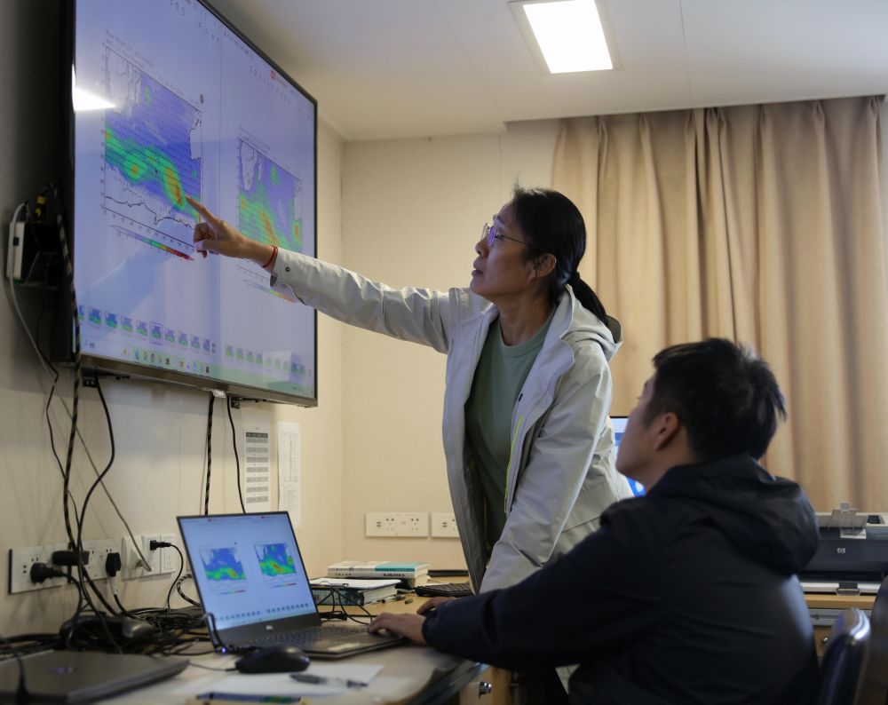 要在“气旋快车”间“闪转腾挪”,得先知道它们大概怎么开,开多快。气象预报资料起到的就是这个作用。好几次深夜,随船气象员、来自国家海洋环境预报中心的徐晓武和刘素芳还守在驾驶室。
