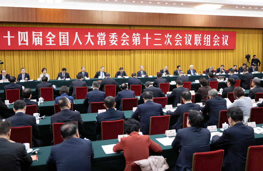12月24日上午,十四届全国人大常委会第十三次会议在北京人民大会堂举行联组会议。赵乐际委员长出席会议。新华社记者 李涛 摄